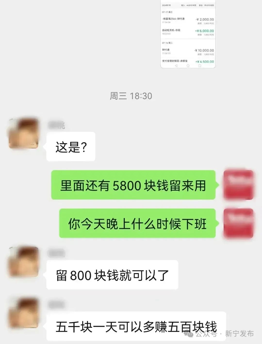 在网上聊了一个星期后,杨先生和“祝某某”之间的话题已经涉及到一系列的问题,比如讨论他们婚后孩子的名字。看到杨先生已经完全沦陷,“祝某某”一步步游说杨先生投资了她公司推出的虚拟返利产品。“祝某某”还告诉杨先生:因为他是内部人员,有内幕消息和名额,也投资了,让杨先生放心。