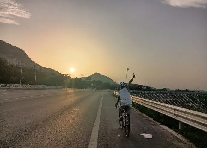 △在山东泰安时,丁文鑫骑自行车拍摄的照片