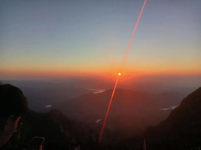 雨过天晴后的彩虹,山顶初升的太阳。