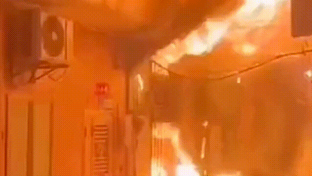 一家商店外发生火灾