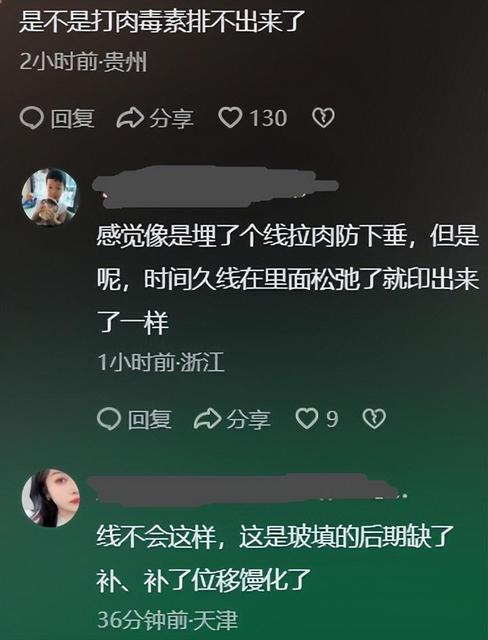 郎平的脸上有几道很明显的痕迹,笑起来表情严重变形,所以有网友质疑她“医美失败”。