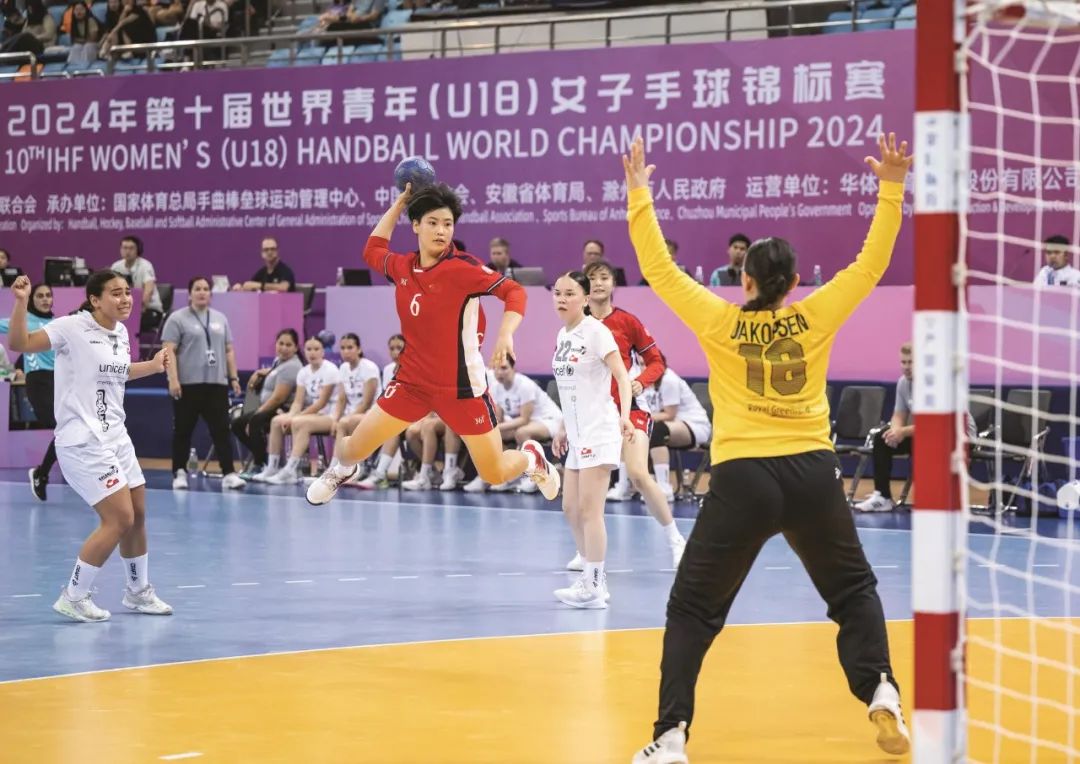 八月二十日,滁州国际手球馆,中国队对阵挪威队的比赛现场。全媒体记者计入军队 卢志永 丁婉毓摄,见习记者