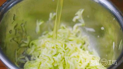 1. 擦丝西葫芦,加入 1 小勺盐,搅拌均匀后静止放水。挤出水分,加入。 2 鸡蛋搅拌均匀。