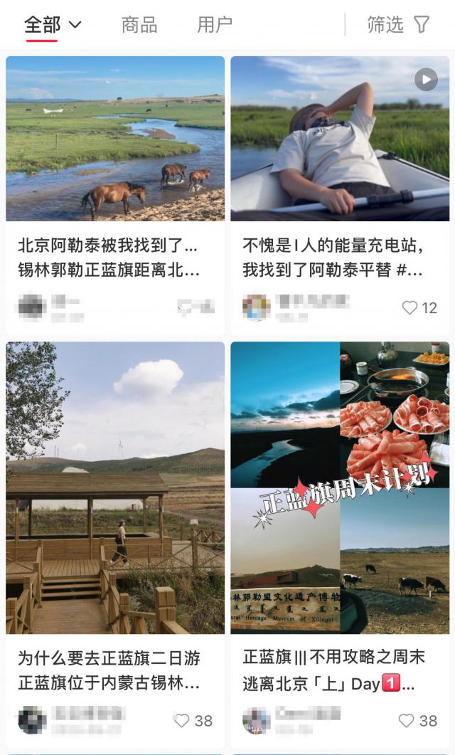 搜索小红书“阿勒泰”,前面全是河北地名。