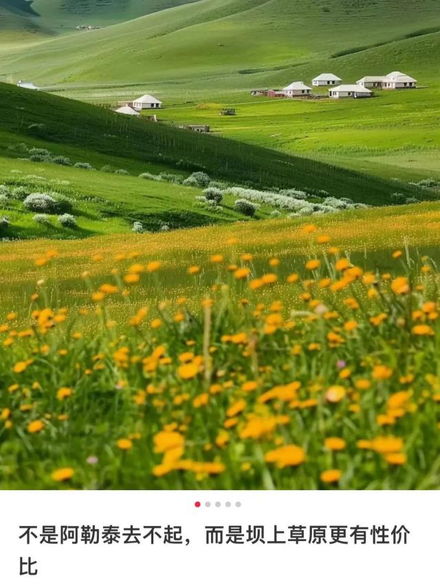 如今,在乌兰察布的笔记中,黄花沟草原逐渐取代乌兰哈达火山成为封面,博主们脱下宇航服,穿上长裙:阿勒泰到了。