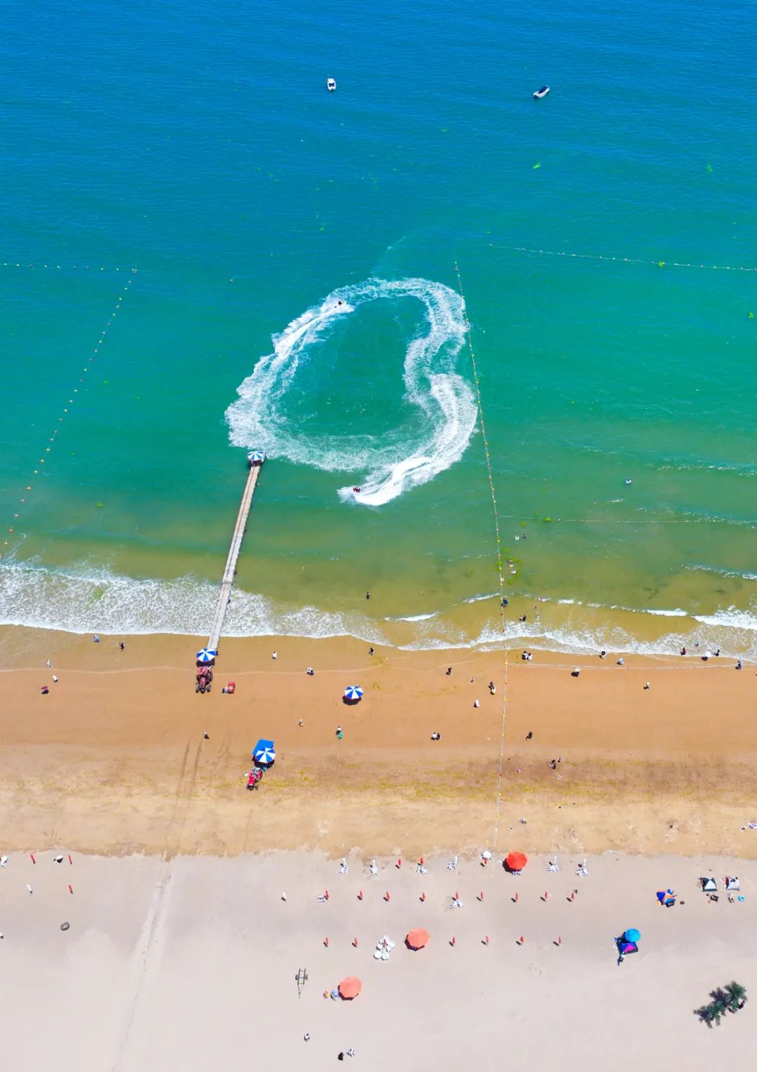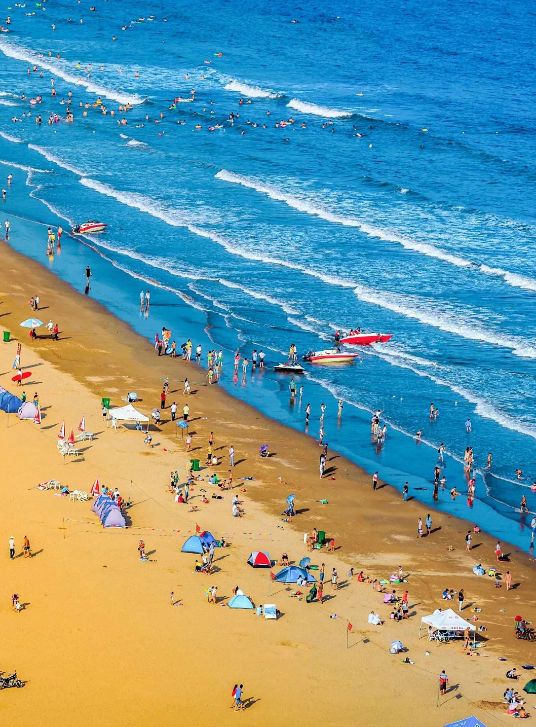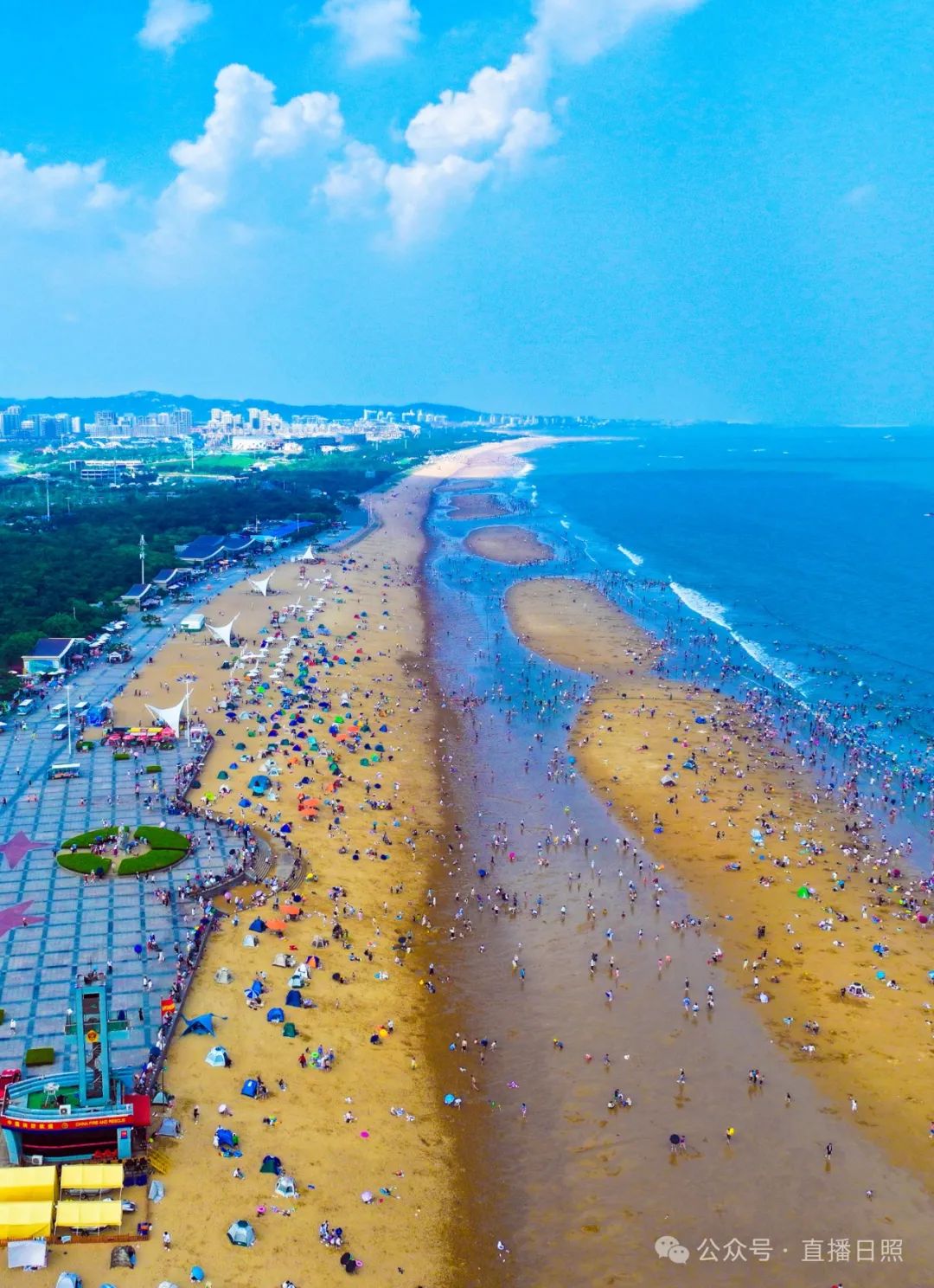 海风习习,海风习习,细浪如雪,沙子细腻柔软,漫步其中,沉浸在“High玩日照金沙滩”的喜悦中。