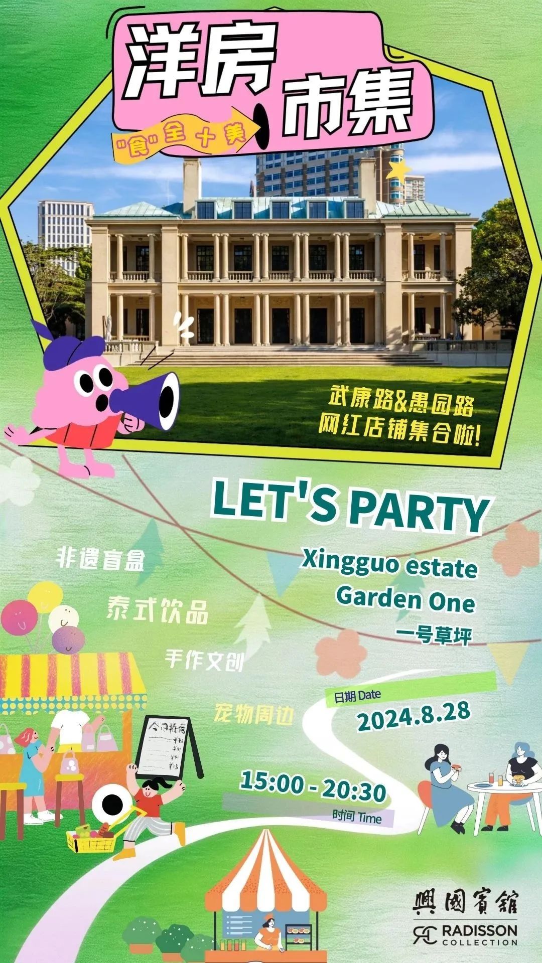 在别墅众多的大草坪上购物是一种怎样的体验?8月28日,上海兴国宾馆将在一号草地举办“别墅市场”,为您解锁神秘别墅,享受快乐购物~【详情】