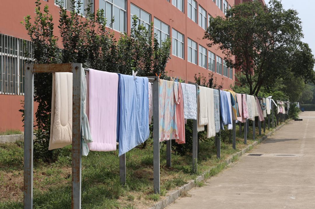 我已经快两个月没回学校了。学生回宿舍的第一件事就是晒被子。住宿楼前的衣架上覆盖着五颜六色的被褥,让生活的气息不断燃烧。转眼间,大学城又热闹起来了。