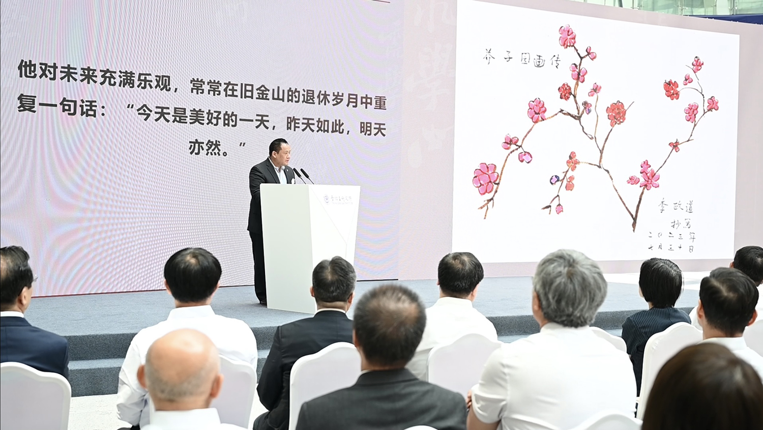 中国科学院教授、李政道研究所所长张杰是李政道的“忘年密友”。8月25日,他向观众展示了李政道一生的学术成就,哀悼追悼会现场。