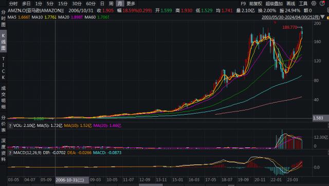 由此,亚马逊也引领了全球云计算,挤进了全球第一科技梯队。公司迎来了一个亮点,股价上涨了几十万倍。(见上图)