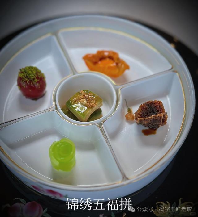 锦绣五福拼:经营过国宴的沈师傅,凉菜干净利落。其中,用扬州中华老字号三四美腐乳做的鲜鲍鱼和金蒜牛油果颇具创意。解放前,扬州酱坊有 100 多家,多为前店后作,各有千秋,尤其是三和、四美为最佳,清朝都是御膳供品,可以买来品尝。
