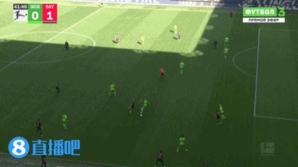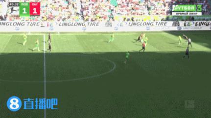 第 42 拜仁右路策动进攻,禁区内沃尔夫斯堡球员救场没有顶远,格纳布里后点得球小角度射门有点偏。↓