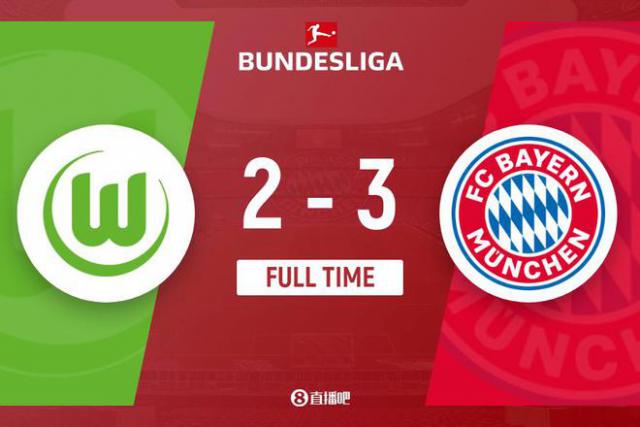 下半场伤停补时 5 比赛结束了几分钟,最后拜仁 3-2 沃尔夫斯堡。