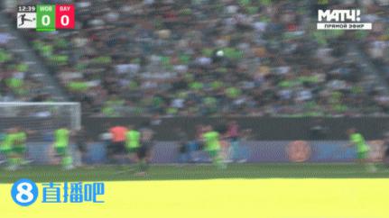上半场的伤停补时 3 一分钟,半场结束,拜仁暂时。 1-0 沃尔夫斯堡。
