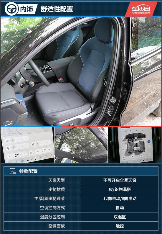 在舒适方面,沃尔沃 EX30 座椅不是很软,但是支撑性很好,长时间驾驶不容易产生疲劳感。头顶上方有一个 2.1㎡全景天窗不能打开,可以给车内带来很好的透明度。需要吐槽的是,即使是顶级车型,座椅加热功能也需要选择,配置与自有品牌形成鲜明对比。