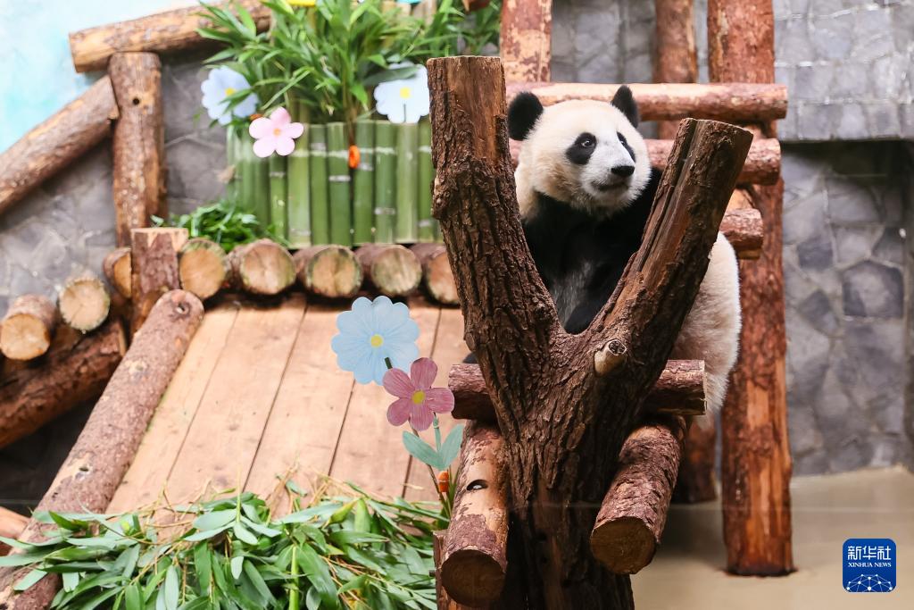 前几天,俄罗斯出生的第一只熊猫“喀秋莎”庆祝了他的一岁生日。同一天,饲养员为“喀秋莎”设计了竹蛋糕。饲养员透露,体重38公斤的“喀秋莎”可爱又调皮,经常趴在妈妈“丁丁”身上嬉闹。