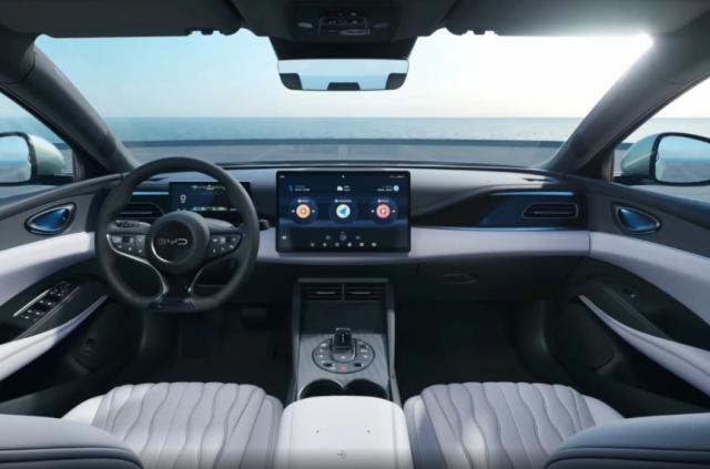 内饰方面还没有正式发布,但是根据之前的谍照,参考海豹 06 计划,很有可能会搭载, 8.8 英寸中控面板和 15.6 英尺悬浮式中控屏,以及海豹 06 基本一致。