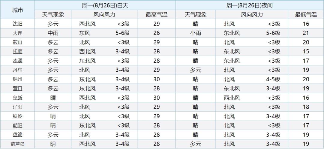 今天早上辽宁最低气温16~22度。