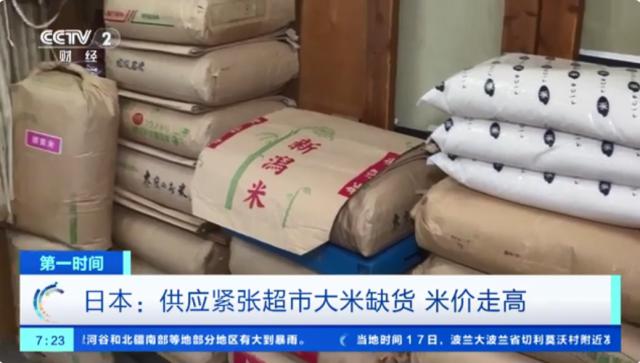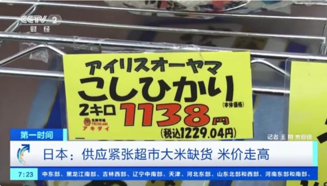 据央视财经 18 据日报报道,近日,在日本东京、大阪等地区的超市和米店,大米供应紧张甚至缺货,大米价格也大幅上涨。