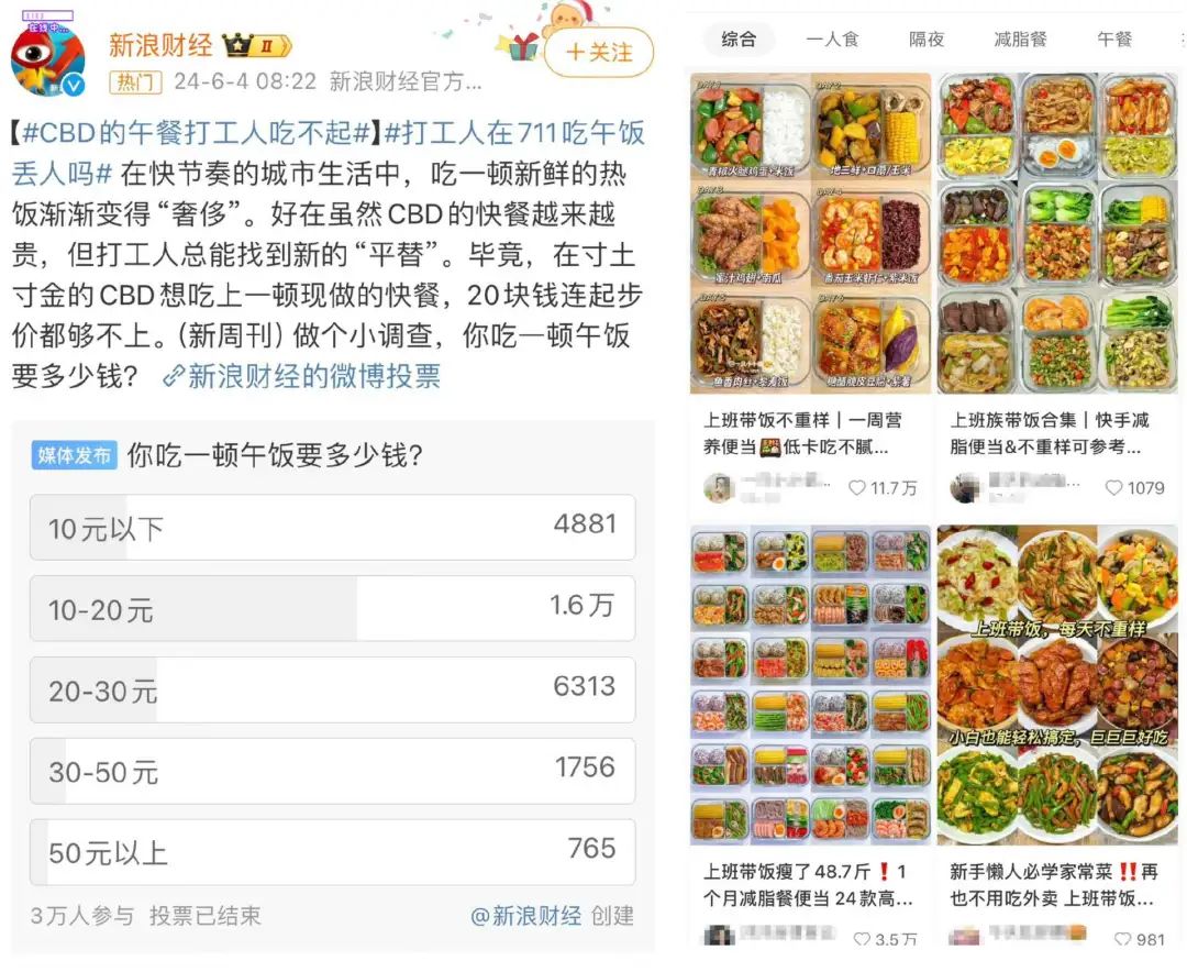 不久前,#CBD的午餐工人吃不起#登上热搜,震惊了一线城市CBD工人的用餐问题,引发热议。新浪财经发起投票,“你吃午饭要多少钱?”共有3万人参加,其中4881票选择“10元以下”,10-20元高达1.6万票。两者的票数相加,换句话说,近70%的消费者选择“20元以下”。