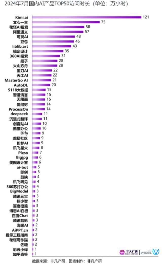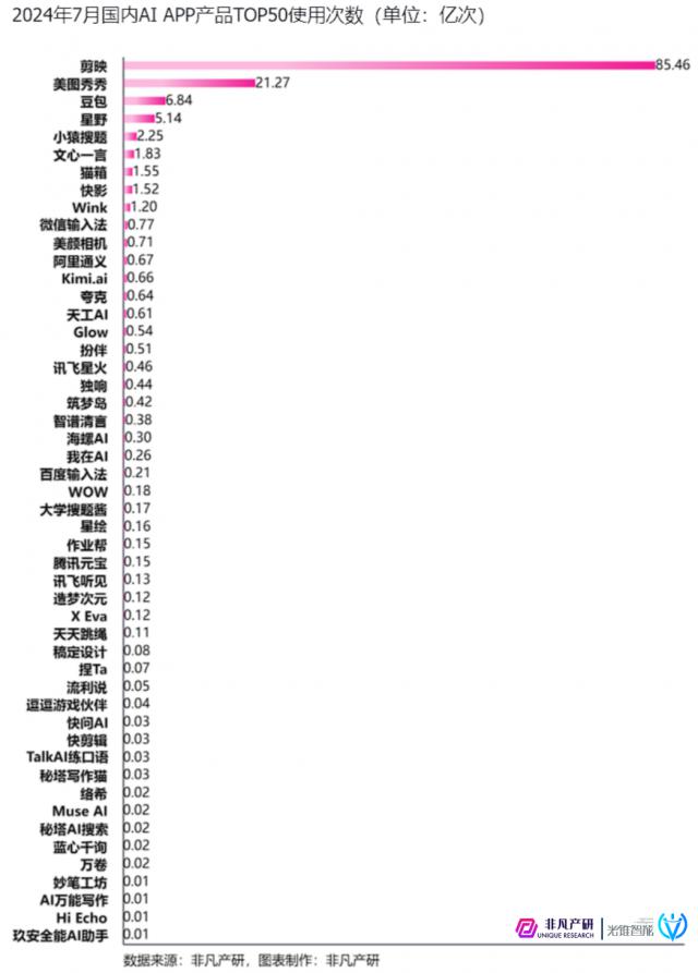 作为光锥智能的非凡产研 AI 多年来,流量数据合作伙伴连续多年对全球近万只。 AI 持续跟踪商品,包括聊天在内的类别 / 搜索、助手 / 工具、办公 / 软件、图像 / 设计、娱乐 / 游戏、视频 / 音频、商业 / 管理、医疗 / 健康、知识 / 教育、应用 / 生态等。