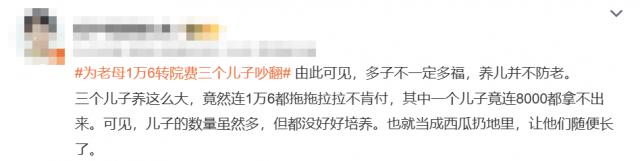 为母亲16000元的转院费三个儿子吵架:养儿防老的窘境…