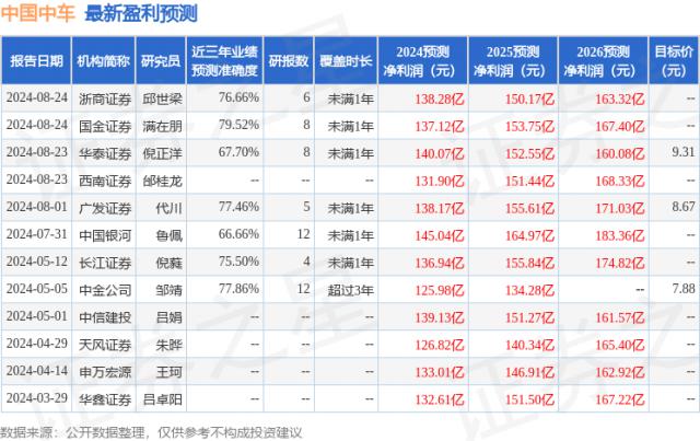 鲁佩中国银河证券有限公司 , 最近,王霞举对中国中车进行了研究,并发布了《2024》调查报告 年中报告绩效点评:利润水平提高,铁路设备繁荣持续。本报告对中国中国汽车进行了买入评级,目前股价为 8.09 元。