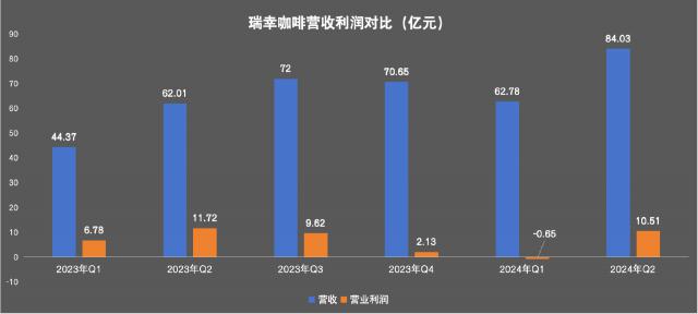 一是营业利润。财务报告显示,瑞幸 Q2 收益 84.03 亿元,同比增长 营业利润为35.5% 10.51 亿,较 Q1 的 6500 损失已经恢复。背后的原因是冰饮旺季来临,瑞幸的叠加逐渐减弱。 9 块 9 影响价格战力度。