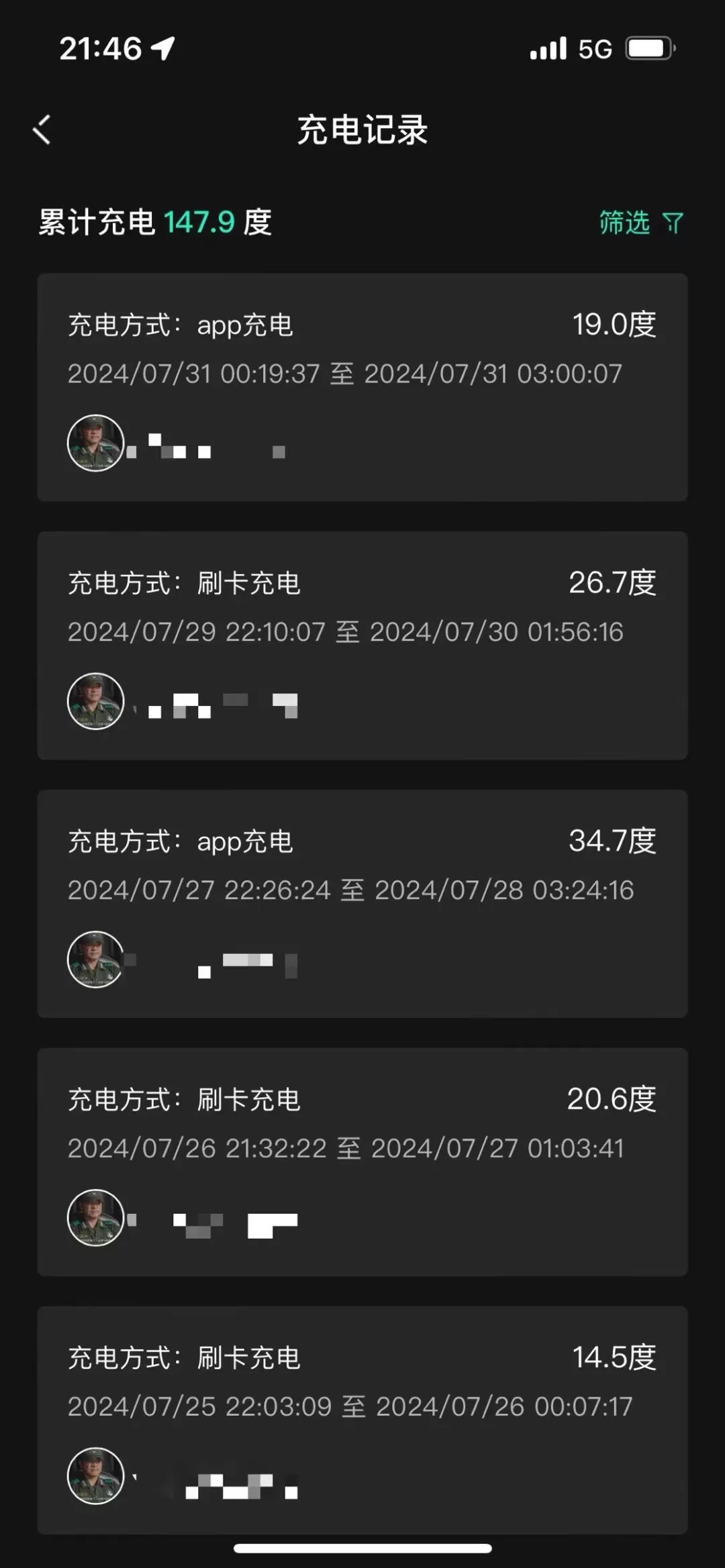 从七月二十四日晚到七月三十一日,总共充了六次能量,大部分都是22点以后的谷电。所以总共147度,总共48.6元。