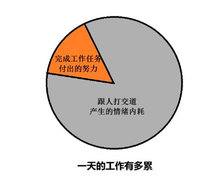 从图中可以看出,一个人工作的大部分压力并不来自于工作本身,而是来自于人际交往中产生的内耗。