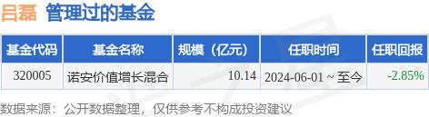 吕磊先生:北京航空航天大学工程硕士。具有丰富的行业研究经验和优秀的金融理论知识。2015年,曾在长城证券、诺安基金、中信工业基金工作,负责军工、汽车、机械、环保、新能源等行业的研究和投资。 年 6 每月加入申万宏源证券有限公司,对周期性行业有深入的了解和研究。现任诺安基金管理有限公司投资管理部门。2024 年 6 月 1 日起担任诺安混合型证券投资基金价值增长主管。