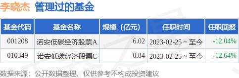 李晓杰先生:中国硕士,曾在东兴证券有限公司、新时代信托有限公司、华夏九盈资产管理有限公司工作,担任投资经理。2023年 年 2 每月加入诺安基金管理有限公司。2023 年 2 月 25 日本担任诺安低碳经济股票型证券投资基金主管。现任诺安平衡优选一年持有期混合型证券投资基金主管。