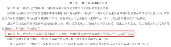 人力资源和社会保障部官网显示,《劳务派遣暂行规定》 2014 年 3 月 1 从现在开始实施。根据这一规定,用人单位在指定实施前使用的被派遣劳动者人数超过其总用工人数 10% 是的,应制定调整用工方案, 2016 年 3 月 1 前几天降到了规定的比例。