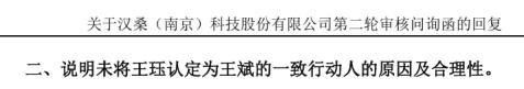 有意思的是,汉桑科技实际控制人的妹妹王珏,以前从来都不是实际控制人的一致行动人。然而,在深交所提问“表明王珏未被认定为王斌一致行动人的原因和合理性”后,王邈出具了《一致行动确认函》,成为实际控制人的一致行动人。