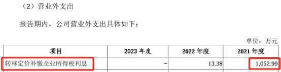 另外,申报稿显示,汉桑科技 2021 年度转移定价补缴企业所得税利息 1052.99 一万元。某知名会计师事务所合伙人对万点研究表示,从字面上看,个人猜测是指企业所得税利息因定价转移而需要缴纳。