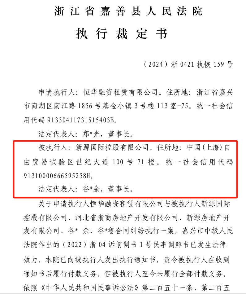 天眼查信息显示,新源国际控股有限公司是一家民营企业,是一家房地产开发经营者,涉及房地产开发、商业运营、科技产业等。股东是两个自然人。2022年5月19日,嘉善县人民法院还向新源国际控股有限公司发布了限制消费的令,该公司被法院采取限制消费的措施;去年7月,上海市浦东新区税务局也发布公告。新源国际控股有限公司欠税97.47万元。