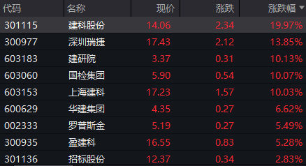 国家检验集团、建科股份、上海建科股份房屋检测概念股大幅上涨。新闻方面,住房和城乡建设部副部长董建国近日表示,上海等22个城市正在开展试点工作,研究建立房屋体检、房屋养老金、房屋保险三项制度,构建全生命周期房屋安全管理长效机制。