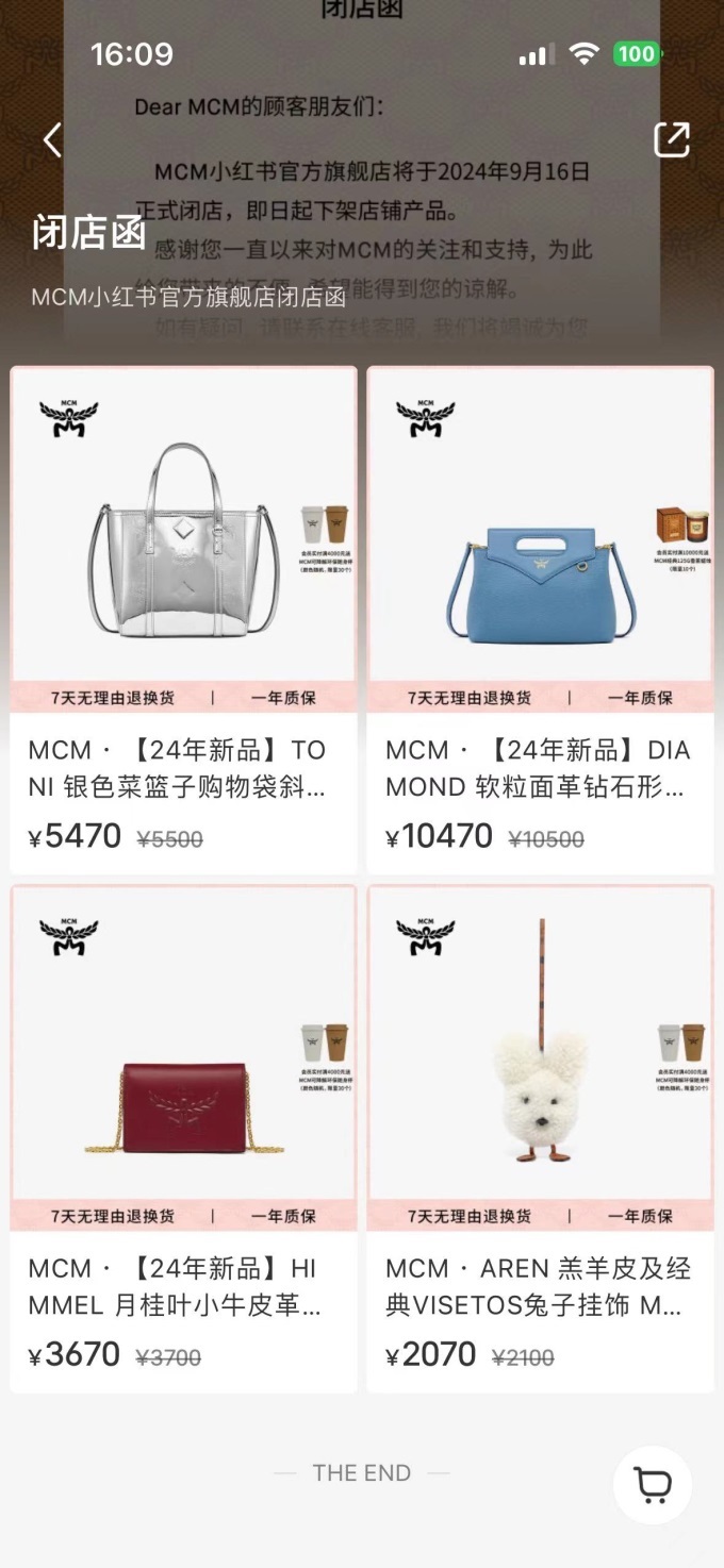 近日,MCM小红书官方旗舰店发布关闭函,将于2024年9月16日正式关闭,店内商品将从即日起下架。MCM表示,客户仍然可以通过其他线上线下官方营销渠道购买MCM产品。
