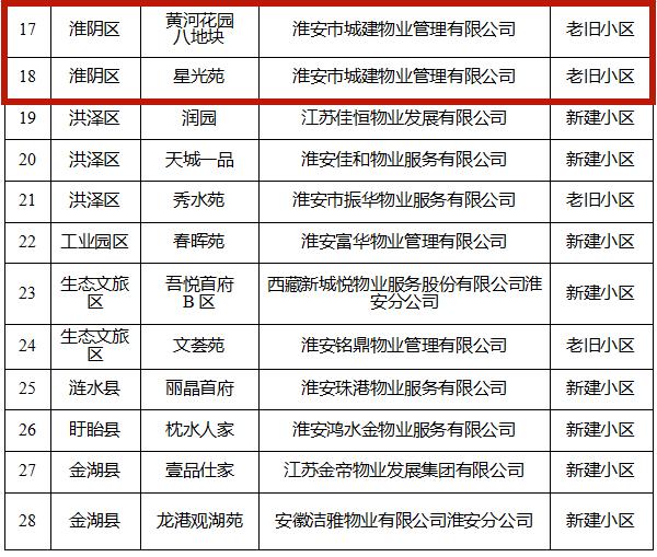 按照《淮安市2024年物业管理示范社区建设实施方案》(淮安市物业管理联办)〔2024〕二号)和《关于公布2024年物业管理示范社区建设计划名单的通知》(淮物管联办〔2024〕5号),经县区初评推荐和专家组现场评估,拟确定红豆公园里东区等首批28个小区达标,现公示。如果在公示期间有任何意见和建议,请通过电话或电子邮件反馈。