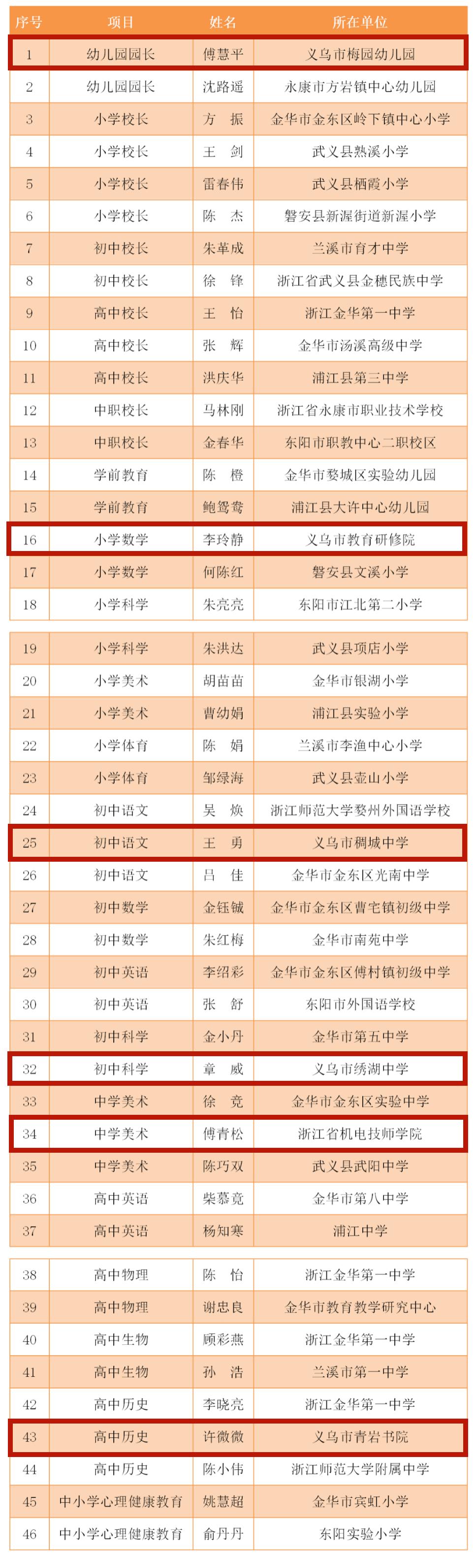 义乌6人入选