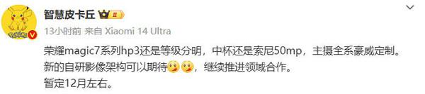 Magic7曝光荣耀 十二月发布:全系大屏幕+豪威主摄+自研影像