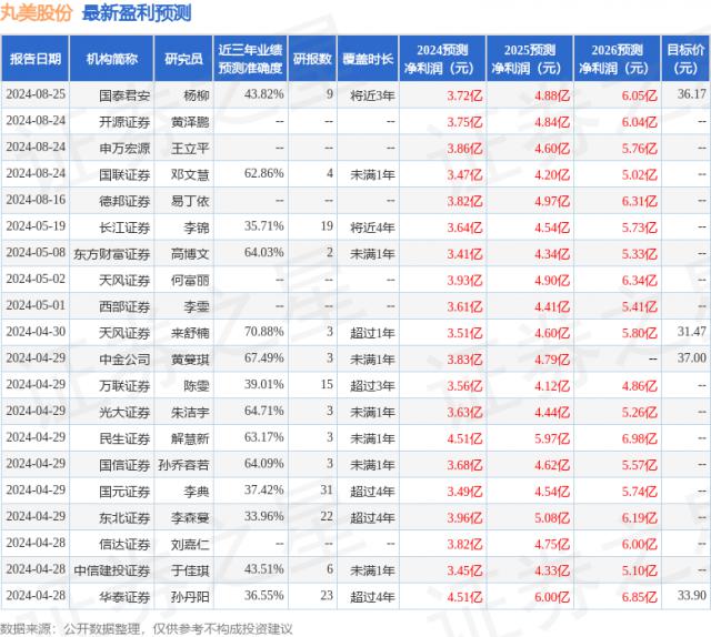根据近三年发布的研究报告数据,TF证券来舒楠的研究人员团队对此进行了深入的研究,近三年的预测准确度平均值为 预测70.88% 2024 年度归属净利润为利润 3.51 十亿,根据现价转换预测。 PE 为 25.11。