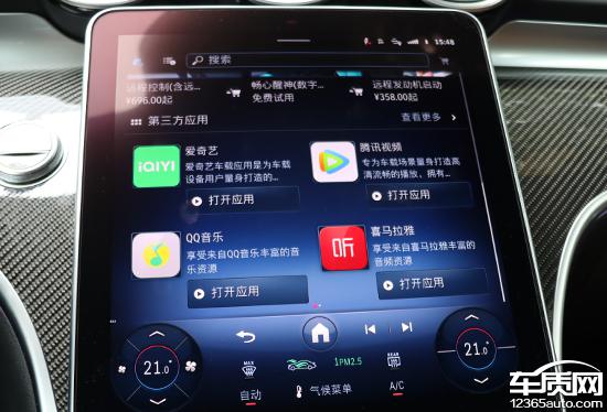 汽车系统配备了应用商店,不仅包括互联网服务和商品,还包括第三方应用程序。前者主要是一些购买服务,用户可以根据自己的需求进行选择。虽然第三方应用总数相对较少,但关键是“贵不贵”,包括爱奇艺、腾讯视频和 QQ 音乐等均为 MBUX 定制版 APP,能带来更好的使用体验。