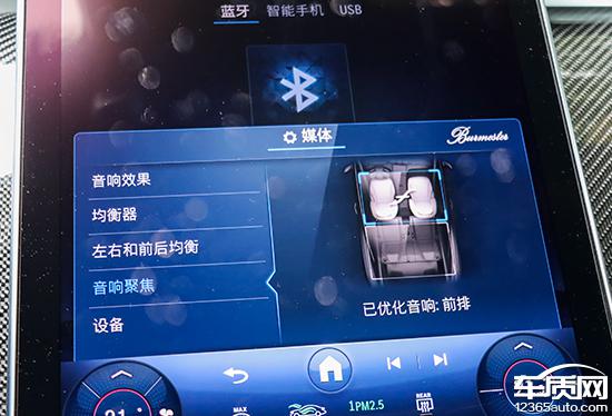 评测车配置 Burmester 配备柏林声音系统的柏林声音系统 13 一个扬声器。音响效果提供两种预设:自然和周边。此外,还可以进行个人设备。此外,还可以详细设置均衡器和扬声器焦点。从实际测量来看,这个音响系统的综合素质相当出色,调整内容丰富,可玩性高,应该能让大多数消费者满意。
