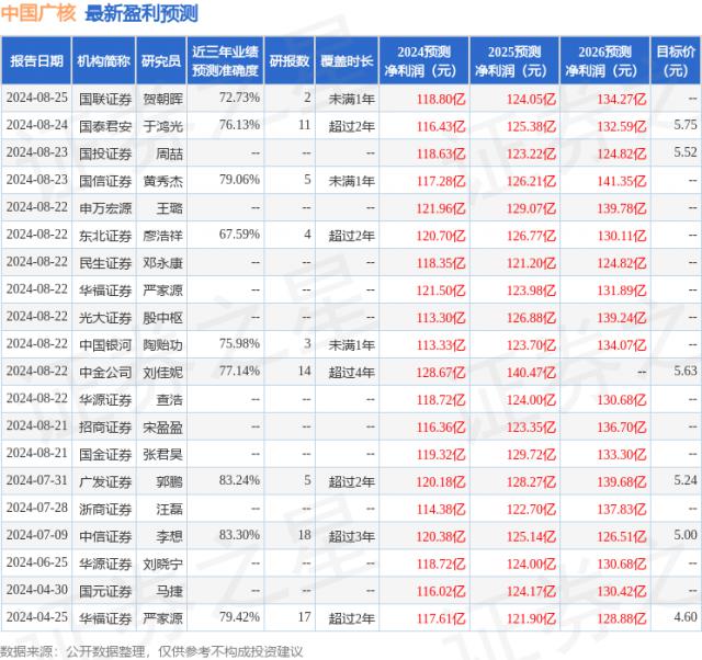 东吴证券有限公司袁理股份有限公司 , 近日,任逸轩对中国广核进行了研究,并发布了2024年的调查报告 中期报告点评:业绩稳定,新获得 6 台湾批准行业领先 & 增长加速,本报告对中国广核进行了买入评级,当前股价为 4.92 元。