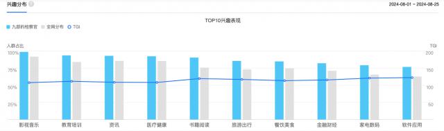 从数据来看,该剧吸引了江苏、河南、广东、山东等省份,其中近60%是消费潜力较强的女性用户。从年龄分布来看,20-29 岁 TGI 顾客浓度最高,高达 141.24,30-39 年用户比例最高,达 36.32%。(参考日期为 2024.7.27-2024.8.25)