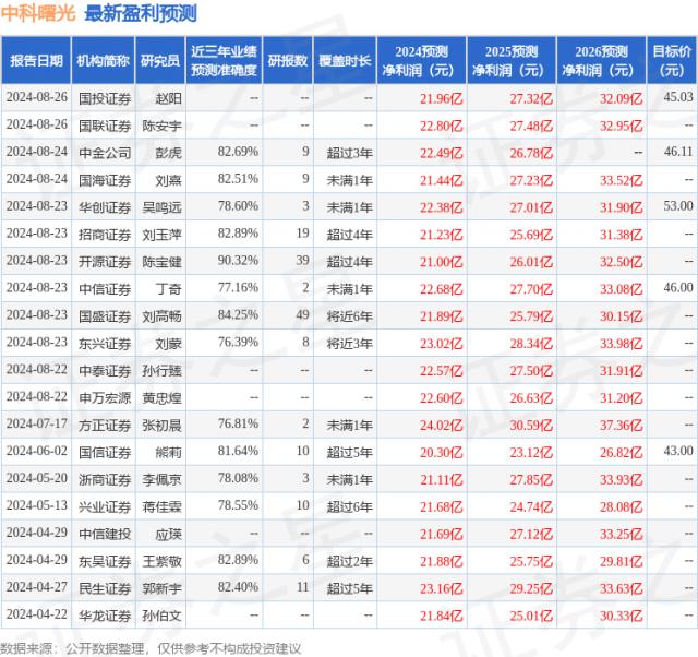 根据证券之星数据中心近三年发布的研究报告数据,开源证券陈宝健的研究人员团队对该股进行了深入的研究,近三年的平均预测准确度高达 预测90.32% 2024 年度归属净利润为利润 21 十亿,根据现价转换预测。 PE 为 24.78。