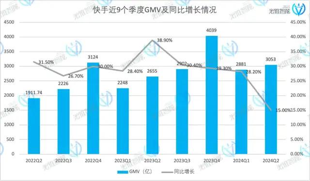 其中,快手电商最受关注。 GMV 达 3053 亿元,同比增长 15%,虽然涨幅不错,但没有达到预期。
