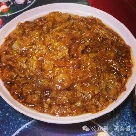 也就是老蒜去皮后,砸碎,用黄酱和香油混合后制成的酱料,又称“蒜酱”。因其辛辣咸味,故称“老虎酱”。这道菜是北方民间餐桌上常见的东西,抹在饼上吃,其味道无限。以前京北上地苏老公家有苏小姐,是个有学问的老小姐,曾教作者三年级语文。这个人虽然是女人,却颇有男子气概,好喝大酒,吃些民间小吃,“老虎酱”是其每一种食物必备的小菜之一。这个人有很多新的知识,我从她那里得知大蒜有杀菌养人的功效。她说,早年医疗条件不好,就用蒜汁液进入鼻孔治疗肺病。虎酱,是一种非常符合卫生和营养条件的好配菜。人们常说:“老虎酱,穷三样,吃起来养人又去胖!"