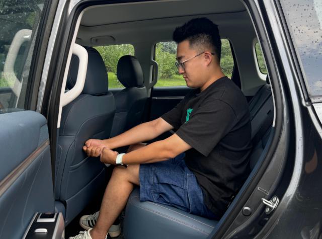 我们身高 176mm 同事们,前排座椅调整好之后,后排还有腿部空间。 2 拳头上下。归功于接近 1.9 米的车高,即使给了遮阳帘之后,头还是很宽裕。